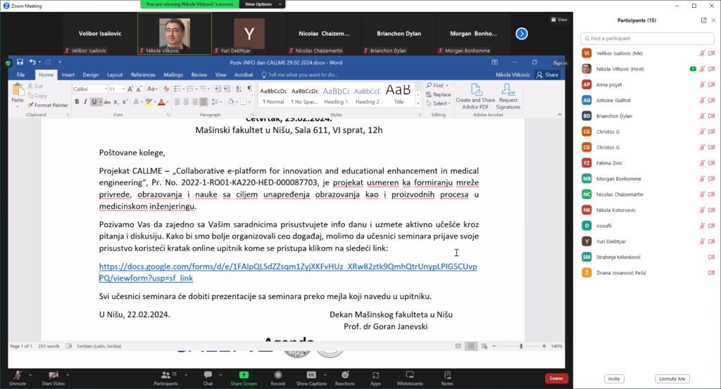 Participation at SAUM conference 2024 and presentation of results of CALLME project